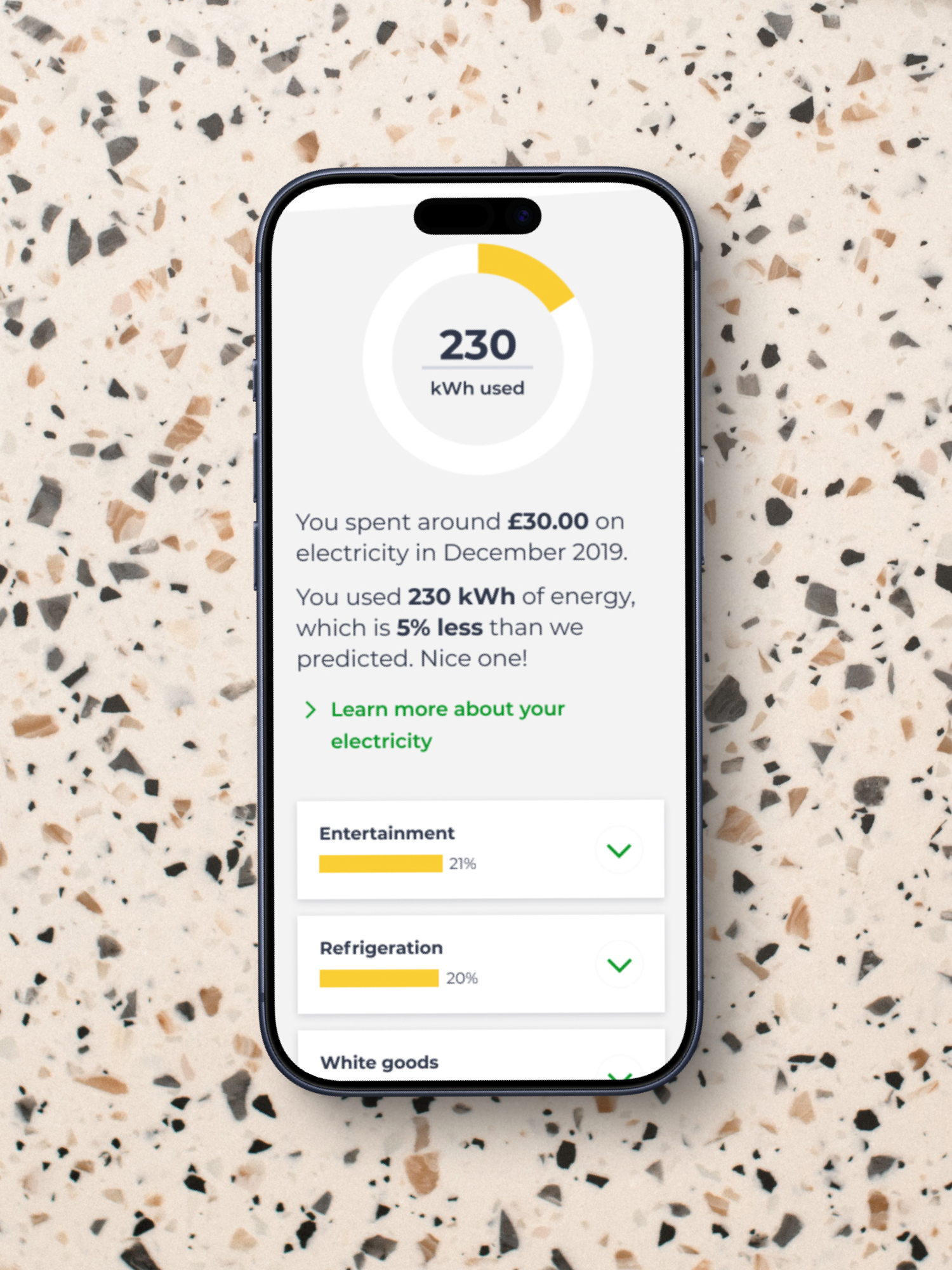 I worked with a team of data scientists, researchers and a junior UX designer to quickly prototype, validate and build an energy insights experience using a make-test-iterate approach. This resulted in Energy Spotlights, a tool that offers users an overview of their monthly energy consumption and insight into the most energy intensive areas of their home, along with actions to help them curb their usage and save money.